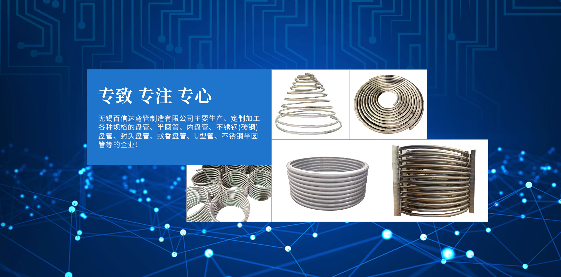 無錫百信達(dá)彎管制造有限公司位于經(jīng)濟發(fā)達(dá)、風(fēng)景秀麗的太湖之濱。本公司擁有完整、科學(xué)的質(zhì)量管理體系,公司的誠信、實力和產(chǎn)品質(zhì)量獲得業(yè)界的認(rèn)可。公司專注生產(chǎn)、定制加工各種規(guī)格的盤管、半圓管、內(nèi)盤管、不銹鋼盤管、封頭盤管、蚊香盤管、U型管、不銹鋼半圓管、碳鋼盤管等的企業(yè)。本公司設(shè)計加工的彎管設(shè)備,質(zhì)量精良、結(jié)構(gòu)合理,效率高、操作簡易、經(jīng)久耐用。公司已經(jīng)承接了各地多個大型場館工程項目的彎管加工,屢次得到了多家大客戶的好評。努力滿足客戶的需要,不斷提高自身水平是公司追求的目標(biāo)。歡迎社會各界朋友蒞臨無錫百信達(dá)彎管制造有限公司參觀、指導(dǎo)和業(yè)務(wù)洽談!